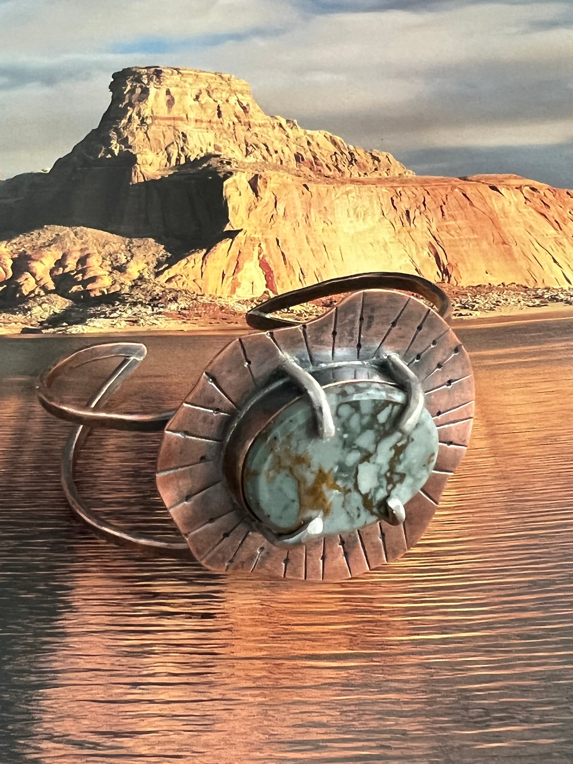 Boho Vibes: Green Jasper & Copper Sunburst Cuff Bracelet