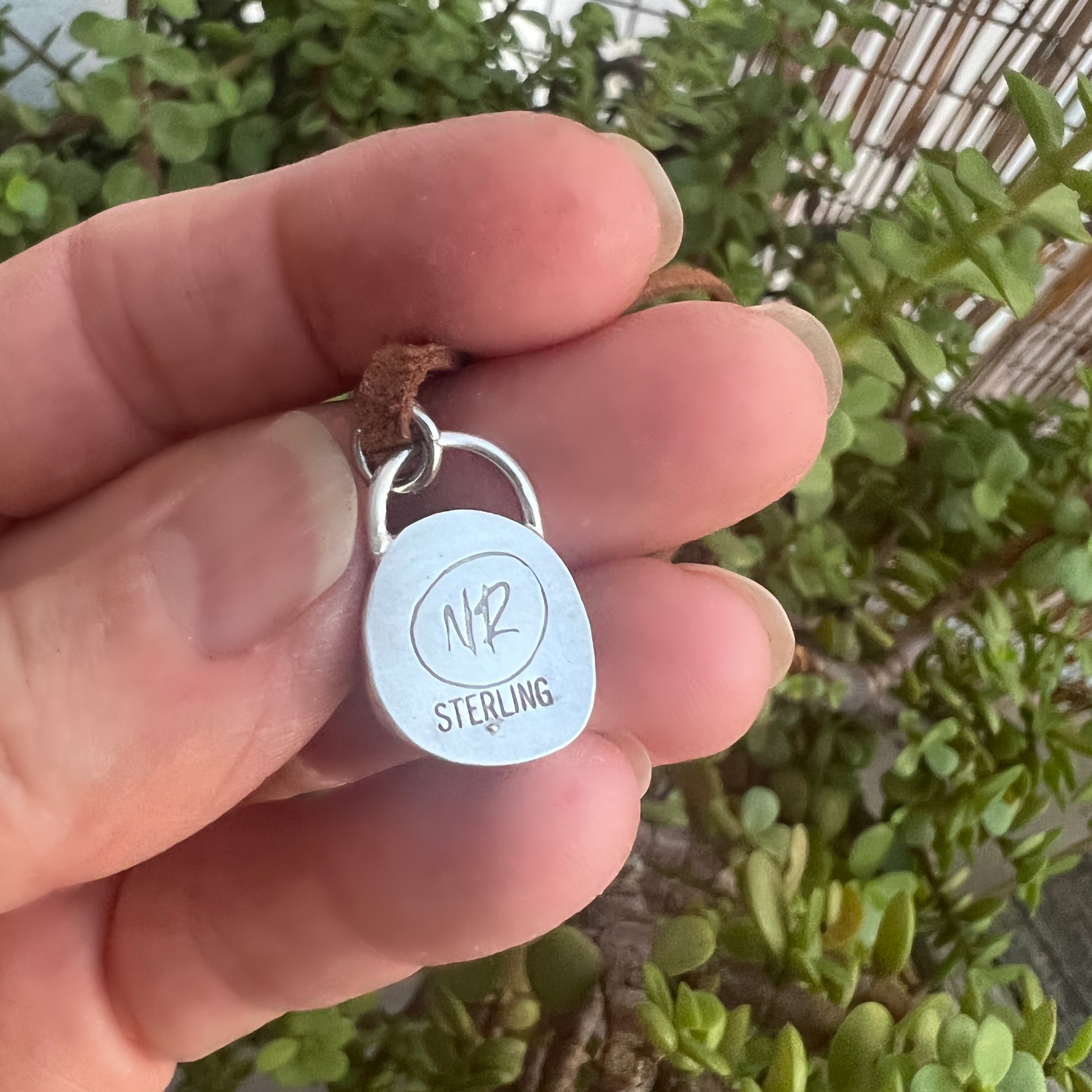 2 > Bisbee turquiose pendant 1/2"W x 3/4"H, vegan soft leather 16" necklace
