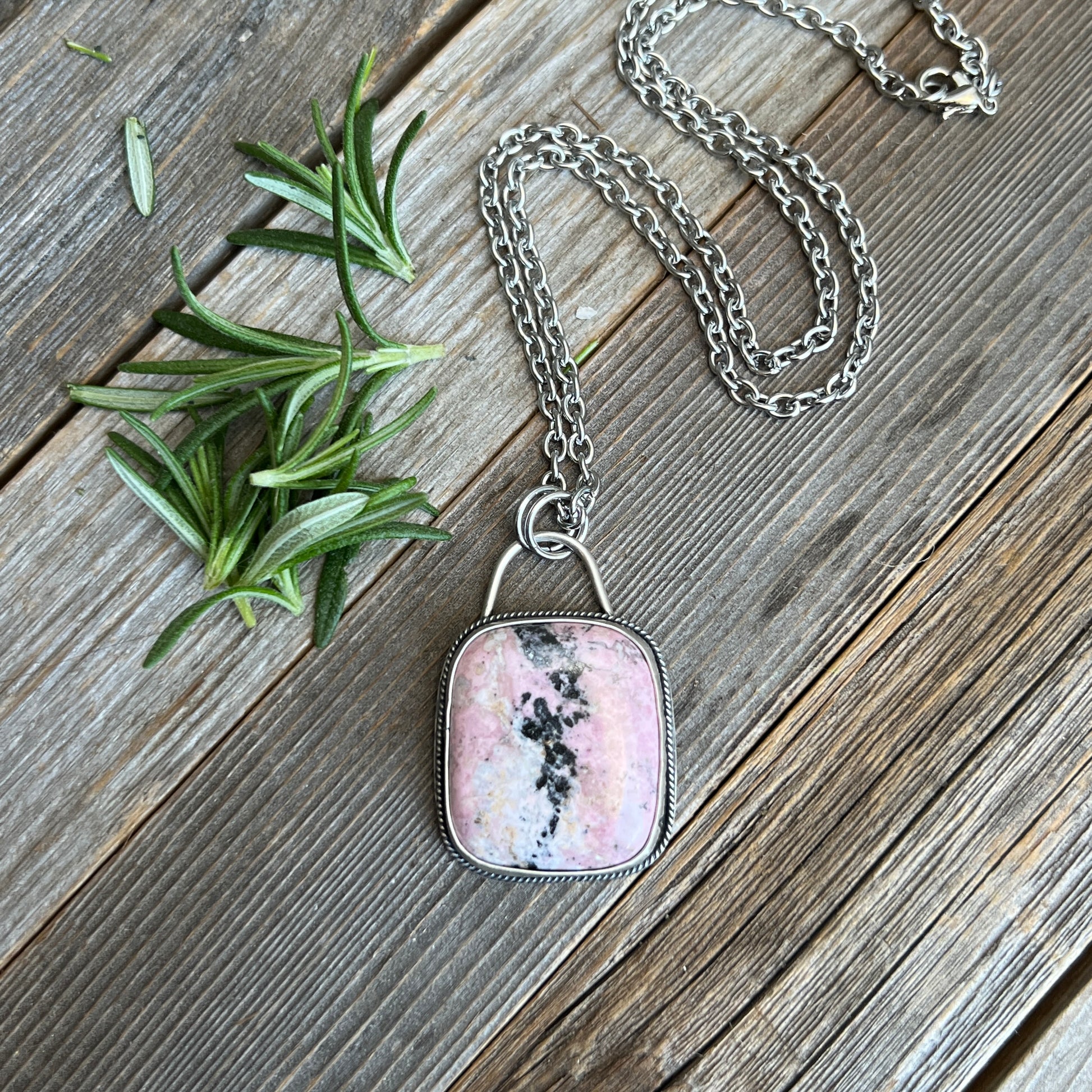 Amore in Pink: Rhodonite Sterling Silver Pendant Necklace
