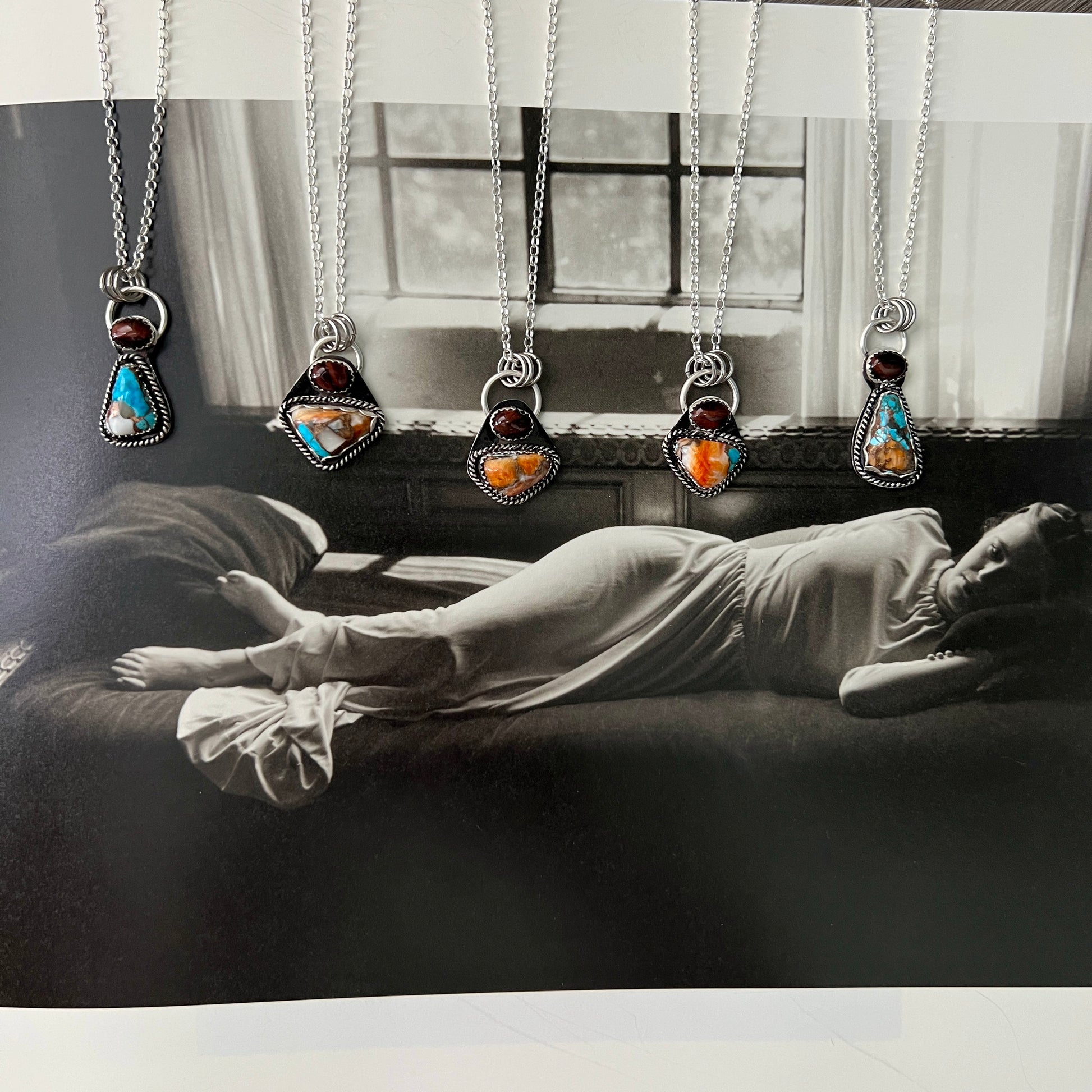 Artisan Spiny Oyster Shell & Mohave Turquoise Sterling Silver Necklace