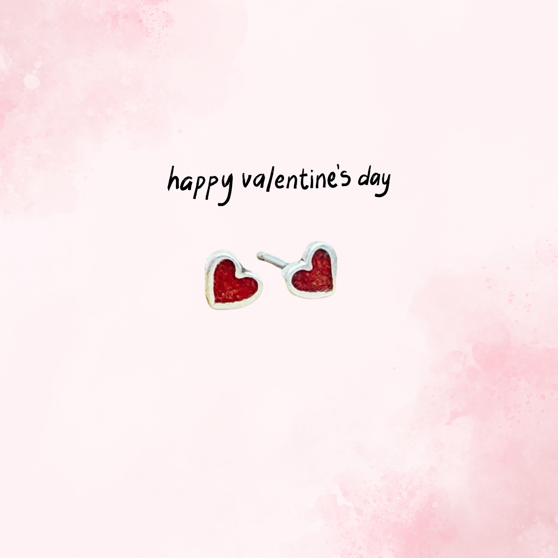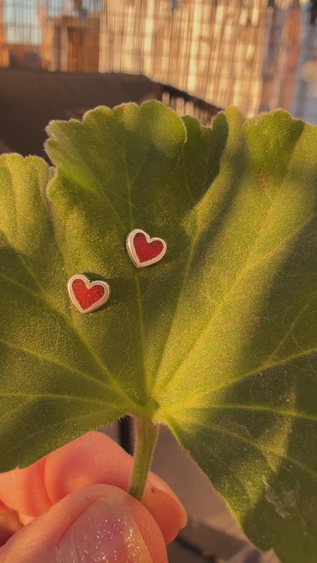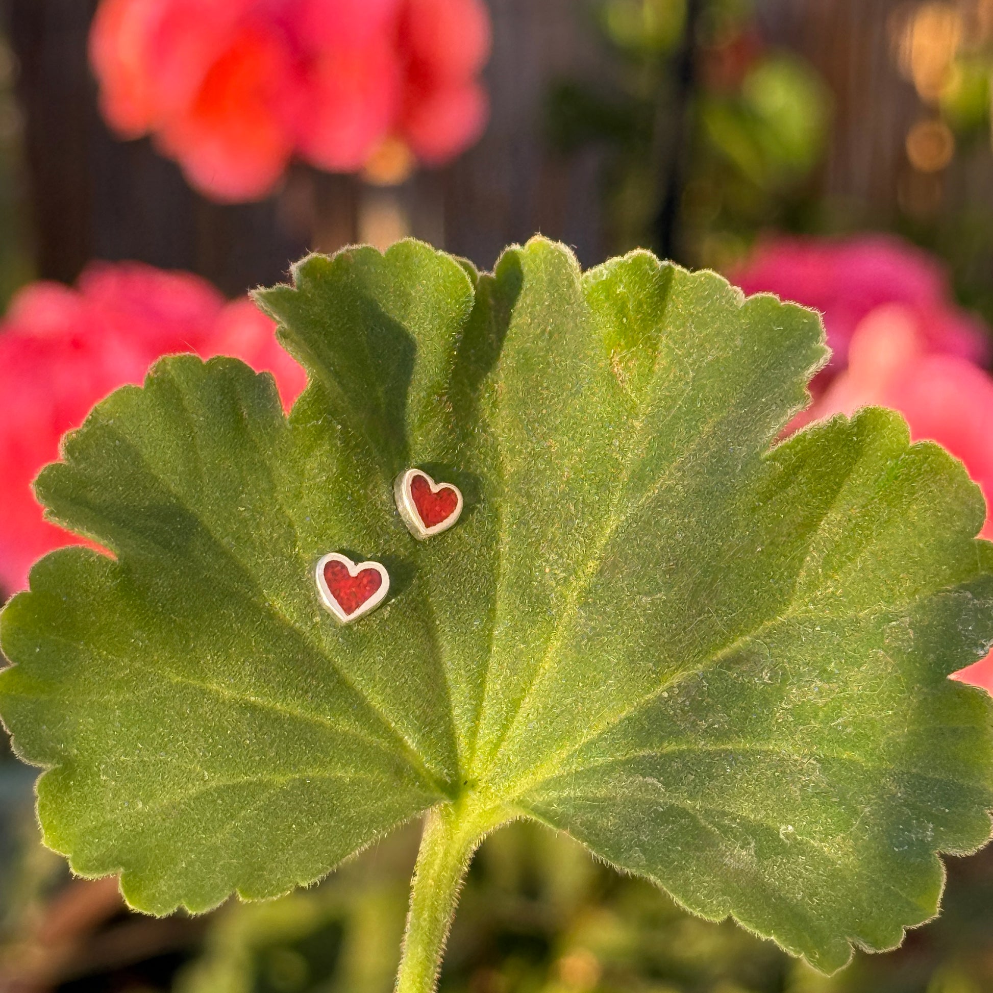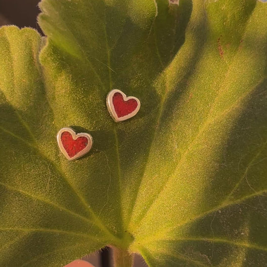 Tiny Red Heart Sterling Silver Stud Earrings: Coral Inlay