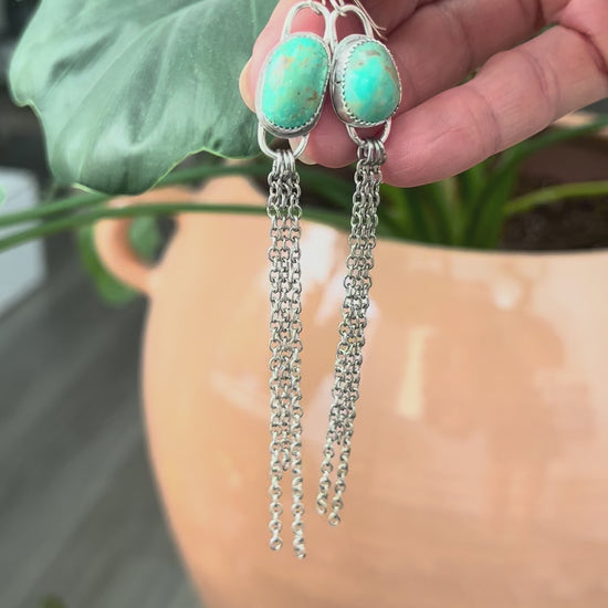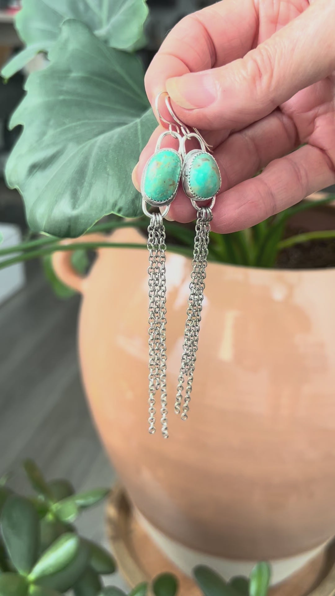 Turquoise shoulder duster earrings with chain fringe: Sterling Silver